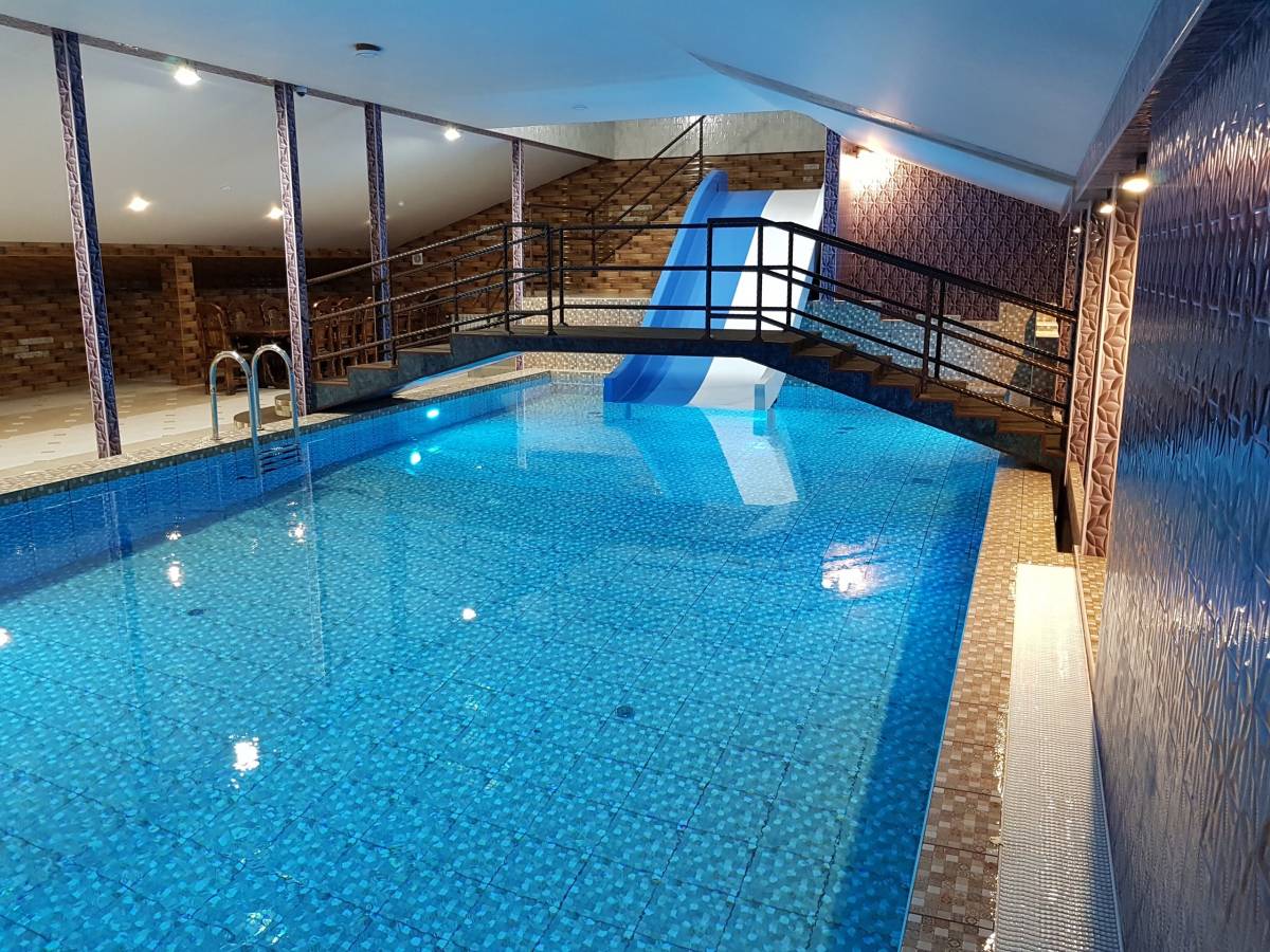 Бассейн, Размеры (Ш x Д x Г), м: 6 x 10 x 1.6, Горки, Гейзер, Водопад, Подсветка, Искусственное течение, Фильтрация,