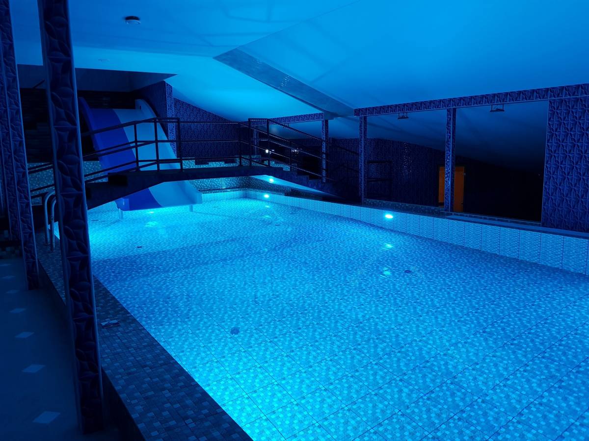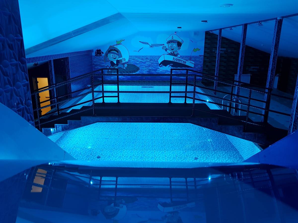 Бассейн, Размеры (Ш x Д x Г), м: 10 x 4 x 1.5, Теплый бассейн, Горки, Гейзер, Подсветка, Искусственное течение, Фильтрация,